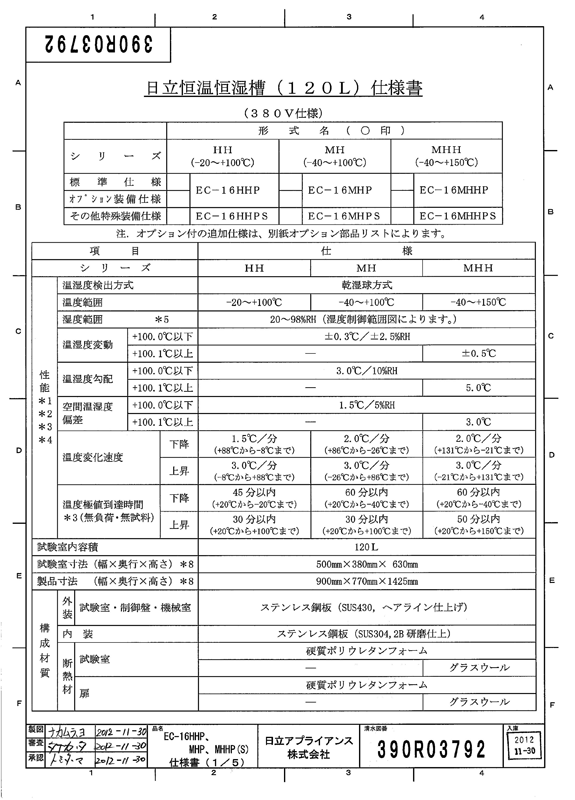 日立环境试验设备的核心部分,采用涡旋式压缩机,使其在低温领域也能实现高效和稳定的运行。不论是在提高各类产品的可靠性方面还是在食品、化学、医药领域的实验研究方面,都能为您提供所需的试验环境。